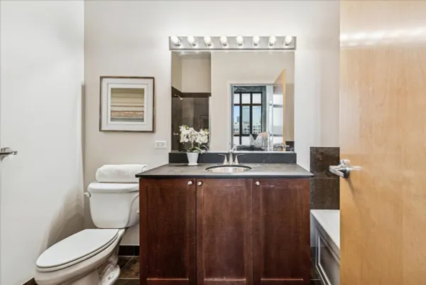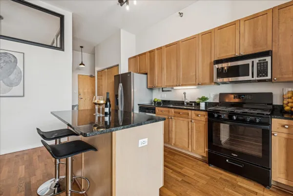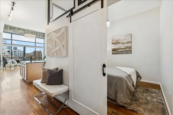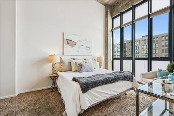 This is a must see 2 bedroom / 2 bath condo with amazing views in the West Loop. It's a rarely available penthouse concrete loft in sought after Lofthaus. Take in the breathtaking east facing views with floor-to-ceiling windows and soaring 18 ft ceilings. Step out onto the 15 foot long balcony through the double sliding doors from the huge living room. Super bright and open floor plan. Maple cabinets, granite counters and new SS appliances complete the kitchen. The granite center island w/breakfast bar is the heart of the condo making it easy to socialize with guest, because everyone winds up in the kitchen. There is also a wide separate dining area that can fit a true dining table. The primary bedroom has the same 18 ft. floor to ceiling windows, organized closets and a primary bathroom with separate slate shower and deep tub. The second bedroom is fully enclosed with large transom windows to bring in the light, plus a contemporary sliding barn door and hardwood floors. Included in the second bedroom is a custom murphy bed / desk combination to maximize space. Extra large second bathroom with marble tile is conveniently across the hall from the second bedroom. Stackable washer/dryer & custom window coverings complete the home. Storage cage #41 included. Heated parking is an additional $25,000. Investor friendly building with no rental cap. Location is the best feature of all. Walk to the Loop, Trains, Metra, Randolph, Target, Dog Park, Restaurants, Bars, & Shops!