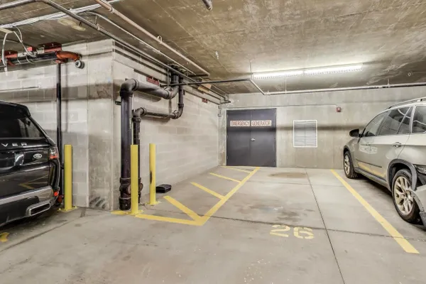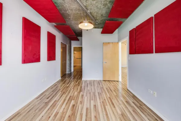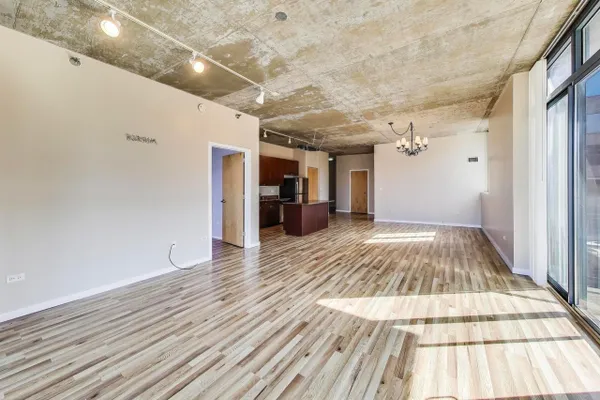 This stunning 2-bedroom, 2-bathroom corner condo in the vibrant West Loop neighborhood of Chicago offers both style and comfort. Boasting an expansive wrap-around balcony, the unit provides breathtaking city views and ample outdoor space for relaxation or entertaining. Inside, the open-concept living area features floor-to-ceiling windows, allowing natural light to flood the space, complemented by modern finishes and high-end appliances. The gourmet kitchen is perfect for culinary enthusiasts, equipped with sleek cabinetry and a spacious island for casual dining. Both bedrooms offer generous space, with the primary suite featuring an en-suite bathroom for added privacy and roll-in shower. Conveniently, the condo includes a deeded garage parking space, making city living even more accessible. With its prime location, this condo is an exceptional find in one of Chicago's most desirable neighborhoods. Please note, the red boards in the primary suite are for sound proofing due to equipment that was in the bedroom. Those will be removed prior to closing.