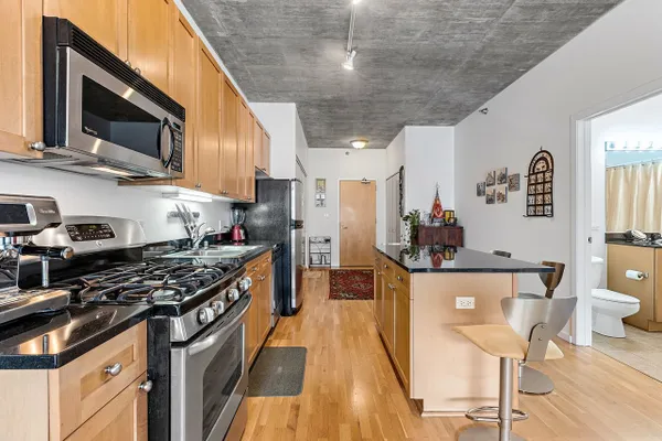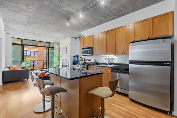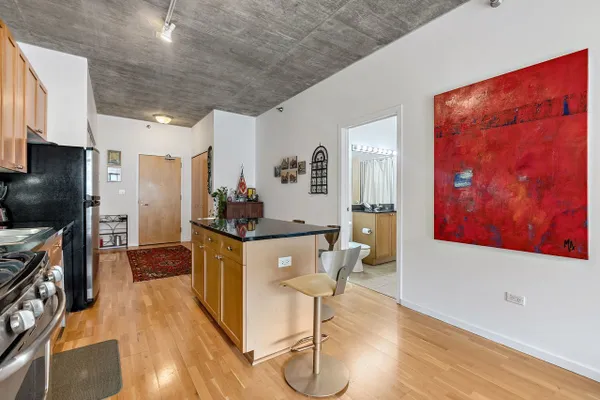 Located in the Heart of the West Loop, this one bedroom one bath has an open and flowing floor plan that features: tall concrete ceilings, stone and stainless steel kitchen, large cabinet space and additional storage, double sliding doors in the living room to give it a very open feel and great connection with the outdoor space, good sized bedroom with two closets and a direct connection with the bathroom, washer/dryer in unit, freshly painted, parking sold separately for 30k. Easy to show. Located close by the park, Skinner school, the el, grocery stores, expressways, shopping, Fulton Market & Randolph streets.